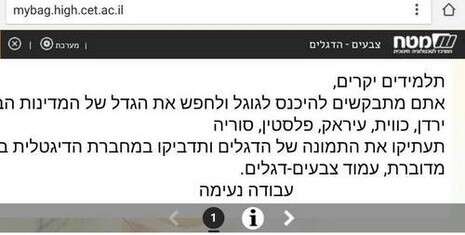 בשיעורי בית שקיבלו תלמידי כיתה ט' בבית הספר "תיכונט" בתל אביב נשאלו הילדים על הדגל של "מדינת פלסטין" באתר מט"ח באופן הבא: "תלמידים יקרים, אתם מתבקשים להיכנס לגוגל ולחפש את הדגל של המדינות הבאות: ירדן, כווית,עיראק, פלסטין, סוריה. העתיקו את התמונה של הדגלים והדביקו במחברת הדיגיטלית".