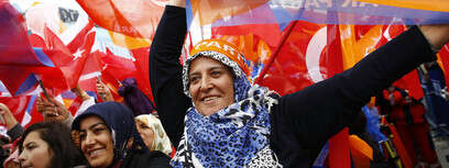 יצליח למשול? עצרת תמיכה במפלגתו של ארדואן, אתמול באנקרה.