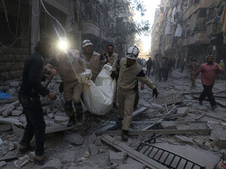 בשבועות האחרונים ניטשת לחימה עזה סביב העיר. פינוי גופה בחאלב אחרי הפצצה, אתמול.