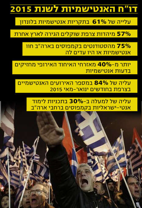 שר התפוצות בנט הציג בישיבת הממשלה את דו"ח האנטישמיות לשנת 2015 ובו נתונים מדאיגים. זינוק של עשרות אחוזים באירועי אנטישמיות בצרפת ובבריטניה. בנוסף, 75% מהסטודנטים היהודים בארה"ב דיווחו כי חוו אנטישמיות