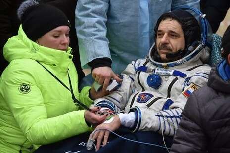 הקוסמונאוט מיכאיל קורנייקו נבדק עם נחיתתו בקזחסטן. הבוקר.