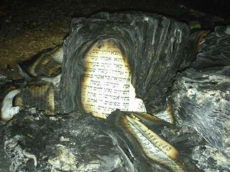 סידור חרוך בבית הכנסת שהוצת בכרמי צור