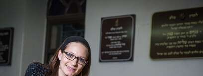 סיוון רהב מאיר בבית הכנסת בירושלים שבו היא מעבירה שיעורים.
