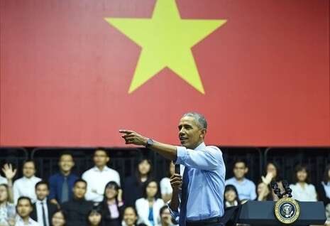 אובמה זכה לתשואות רמות ממאות צעירים שציפו למפגש אתו כשעלה לבמה בבירת המסחר של המדינה, הו צ'י מין סיטי. סובוי, אחת מזמרות הראפ המפורסמות במדינה האסיאתית, פתחה את האירוע בשיר בווייטנאמית העוסק בשאלה אם אנשים באמת שמחים כשיש להם כסף.