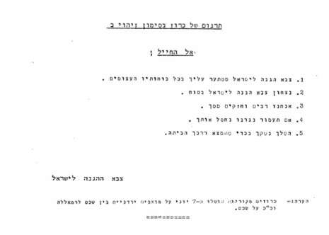 תרגום של אחד הכרוזים שהושלכו במלחמת ששת הימים