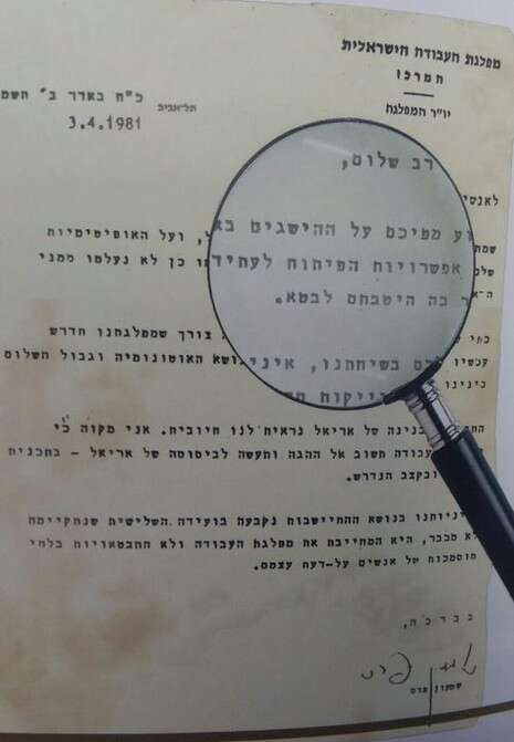 ''שמעון פרס חתום על הקמת אריאל ועידוד העלייה אליה''. הקמת אריאל