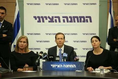 ''החלטתי יחד עם חברתי ציפי לבני שהמחנה הציוני יקיים עצרת בכיכר רבין''. הרצוג בישיבת הסיעה