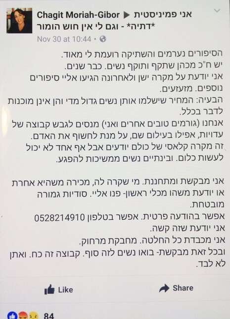 נשים טענו כי נפגעו במהלך השנים מחבר כנסת מ''הבית היהודי''. אחד הסטטוסים בפייסבוק