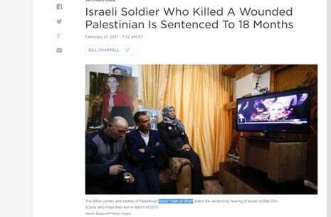 הסיקור בעולם: אתרי החדשות הגדולים בעולם דיווחו במהירות על גזר הדין של החייל אלאור אזריה, שקיבל היום (ג') שנה וחצי בכלא על ידי השופטים בבית הדין הצבאי בקריה על הירי במחבל הפצוע עבד אל-פתאח א-שריף שביצע פיגוע דקירה בחברון לפני כשנה. חלק מהאתרים הסתירו בכותרת את העובדה כי מדובר היה במחבל.בסוכנות הידיעות AFP, המספקת ידיעות לאתרים רבים בעולם, תואר המחבל בכותרת רק כ"פלסטיני" – וכותרת בנוסח זה הגיעה לאתרים גדולים רבים כמו ה"דיילי מייל", "לוס אנג'לס טיימס" ו-"טיימס אוב אינדיה".