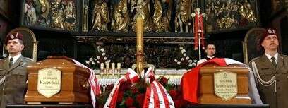 האם זה מה שהתרחש בסולנסמק בשנת 2010?''. (ארונותיהם של בני הזוג קצ'ינסקי בטקס האשכבה)