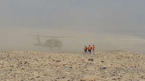 מתנדבי המשטרה סורקים אחר מטיילים באזור המזוהם