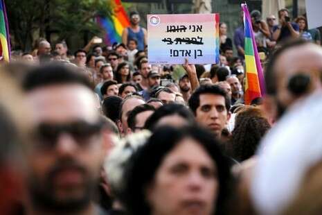 במחאה על עמדת המדינה בנושא אימוץ ילדים על ידי זוגות חד-מיניים, צעירים, מבוגרים ומשפחות הגיעו להפגנה בקריית הממשלה בתל אביב. מספר מפגינים נעצרו. מנהלת המרכז הרפורמי: "רבנים מסיתים מגייסים את התורה לטובת ההומופוביה"