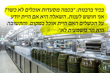 נירה, מלצרית במסעדה בחולון, הוסיפה בשיחה עם 360: "היה מצב בפסח שהיו לנו שקיות של קטשופ שלא הייתה עליהם כשרות לפסח. היה כתוב 'כל ימות השנה חוץ מפסח', אבל את הבוסים זה לא עניין והם הורו לנו להשתמש בהן. יש לי חברים ששומרים כשרות ומפריע לי שהם סומכים על תעודה שלא תמיד מגיעה באמת. אם הייתי דתייה - אולי לא הייתי אוכלת יותר במסעדה או עושה בלגן".