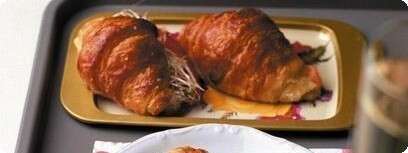 אוכלים ביחד ולא יוצאים מהמיטה. הארוחה כוללת: קרואסון, גבינת שמנת סלמון ולקינוח - פנקייק. שני קרואסונים - ממולאים גבינת שמנת וסלמון מעושן, או לבנה, פלפלים קלויים ונבטים; פנקייק עם סירופ מייפל. עוד על המגש: פרח טרי, קפה וכן, אתם רואים נכון - פינוק של שמפניה על הבוקר.