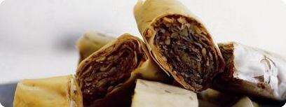 עוגיות פריכות שמכינים בצ'יק - ממלאים עלי פילו שלמים באגוזים, מגלגלים לרולדה וחותכים לעוגיות. כמות: 60 עוגיות זמן הכנה: 35 דקות