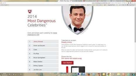 בנוגע לכך מתברר כי כיום ברחבי העולם ג'ימי קימל, בדרן ומנחה תוכנית הלילה Jimmy Kimmel Live, הוא הסלבריטאי המסוכן ביותר באינטרנט עבור גולשים המחפשים מידע עליו ברשת. כך עולה ממחקר שנערך זו השנה השמינית ברציפות על ידי חברת מקאפי. המחקר נערך על אנשי מפתח בעולם התרבות והבידור, והוא חושף את הדמויות המסוכנות ביותר לגולשים מבחינת כמות הרוגלות שמקושרות על ידי פושעים לדמויות אלו. המחקר: McAfee Most dangerous Celebrities חושף כי בצמרת הרשימה מככבת רשימה של בדרנים ומוסיקאים.