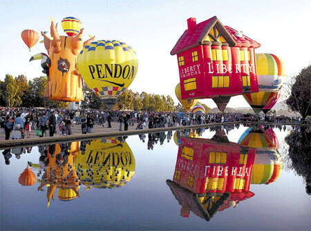 עשרות כדורים פורחים בפסטיבל שהתקיים בקנברה, אוסטרליה