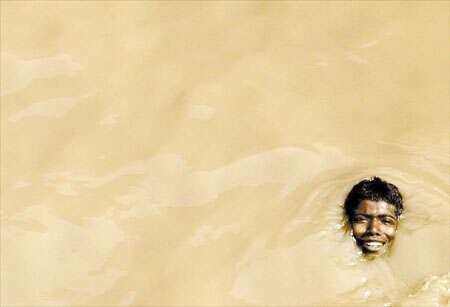 ילד מנסה להצטנן מעט במימי בריכה בוצית בבומביי