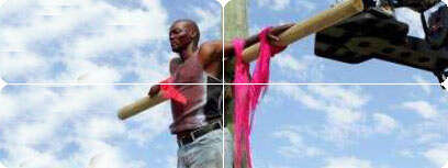 ישו מדרום אפריקה מתחיל להטיף אחרי מפגש עם השטן, הלבוש בבגדי עור שחורים בטקס ברית המילה שלו. הוא נצלב על ידי אנשי כוחות בטחון חמושים ברובים שהתמלאו פחד מהמסרים שלו המטיפים לשוויון. הקימה לתחיה נרמזת בסרט ולא מוצגת ממש ומטרתה לסמל תקווה ליבשת העניה ביותר בעולם, אמר דורנפורד-מיי.