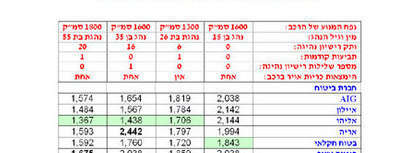 הפניקס, כלל, אריה וביטוח ישיר - היקרות ביותר בתעריפי ביטוח הרכב. אליהו וביטוח חקלאי הכי זולות