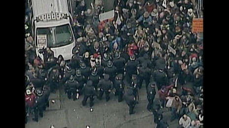 פעילי המחאה לא נרתעו על אף פינוי המאהל והחלו ביום של הפגנות ברחבי מנהטן. כמה נעצרו בעימותים סמוך לבניין הבורסה בוול סטריט
