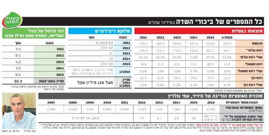 הנה עוד שני נתונים פיננסיים שמעידים על חוזקה של ביכורי השדה והשליטה ההולכת ומתחזקת שלה בתחום של שיווק סיטונאי של פירות וירקות. האחים שבע מושכים יחדיו דמי ניהול של כ-5-7 מיליון שקל מדי שנה, בשנים האחרונות. החברה גם מחלקת דיבידנדים של עשרות מיליונים בשנתיים האחרונות, דבר טבעי לאור הגידול העקבי ברווחיותה.