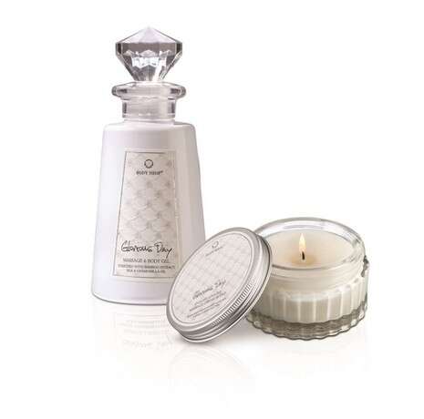 עוד רעיון למתנה והפעם לאירועי החינה, מקווה ומסיבת רווקות, נקרא "Glorious Day" וניתן להשיג בחנויות "BODY SHOP". מדובר בבקבוקים לבנים עם פקק יהלום, בניחוח מאסק, וניל ופרחים לבנים ותכשירטים המכילים שקדים, שמן פפאיה, שמן במבוק ועוד שכל אחד מהם עולה פחות ממאה שקלים.