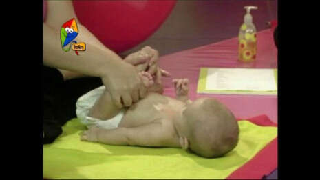לינוי גולן, מדריכה מוסמכת לעיסוי תינוקות, מדגימה ומסבירה על שיטות להקלה מכאבי גזים או עצירות