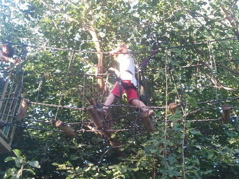 אולם, לאחר שני קטעים מתנדנדים בין שמים לארץ הגיעו גם הגיעו המסלולים המאתגרים, ואיתם גם ההבנה שמכאן כבר אי אפשר לחזור לאחור, רק להתקדם, באוויר, ובזהירות. בני בן העשר, שנולד עם גנים של עז הרים, לא הבין כלל על מה המהומה, ובעודי שיכורה מתחושת הניצחון, הוא הוציא ממני הבטחה שבפעם הבאה אנחנו עושים יחדיו את המסלול האתגרי.