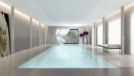אזור הבריכה מכיל את חדר הכושר, המסז'ים וחדר הכושר בצמוד לחדר המלח וממוקם במרתף הבית. אלמנט התאורה בבריכה מבוצע על ידי אלומת אור חזקה המקרינה לעבר התקרה. שבירת קרן האור בהטבעת אלמנט התחרה בתקרה גורם לכך שהאור מועבר כלפי מטה. אלמנט תאורה זה בוצע בעבר על ידי אינגו מאורר ופיליפ סטארק במלון "הדסון" בניו יורק, כאשר אלומת אור חזקה האירה שנדלייר ענק ובו במקום נורות הושמו הולוגרמות של נורות שהוארו על ידי האלומה.