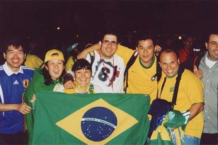 מרקו נחמני, במרכז, עם אוהדי נבחרת ברזיל במונדיאל 2002