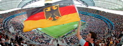 אוהדי גרמניה ממלאים את האיצטדיון החדיש בפרנקפורט, הערב. צילום: אי-פי-איי