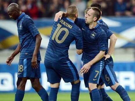 שחקני נבחרת צרפת חוגגים. אנגליה יצליחו לעצור אותם? צילום: אי-אף-פי