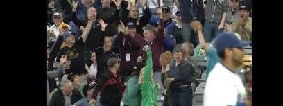 וואו! אוהד בקהל תופס מחבט בייסבול מעופף