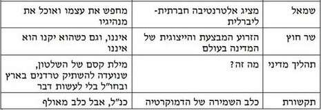 "הזירה הלשונית" עוזבת לשעה את הנמל הבטוח של דיון לשוני, ומנסה ליצור מילון פוליטי עכשווי, המתייחס למה שהוא לכאורה נר לרגלינו: הדגם המערבי של הדמוקרטיה, אף כי הוא אינו עשוי מעור אחד. האחריות על כותב המדור, ומי שחפץ יכול לרגום אותו באבנים, אך עדיף להגיב בתחתית העמוד. תגובות נבחרות תתפרסמנה בשמחה בשבועות הבאים.