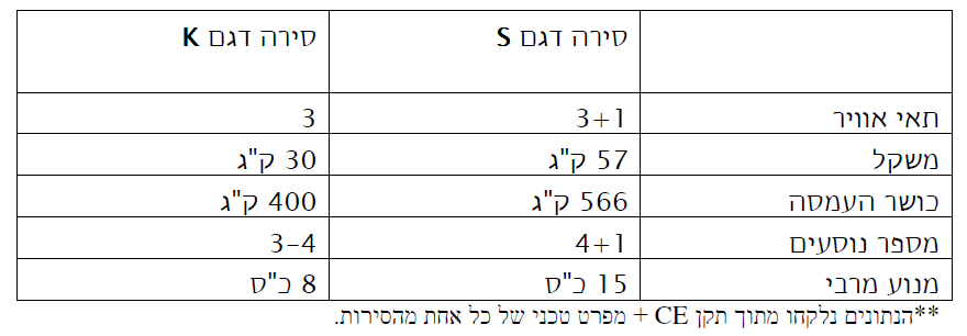 - מספר נוסעים - בדגם S התקן מאפשר 4+1 נוסעים לעומת, 3-4 נוסעים בלבד בדגם K.