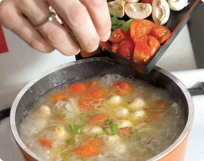 3. בוצעים ביד או חותכים את פטריות היער (תלוי אילו פטריות השגתם), ומוסיפים למרק.