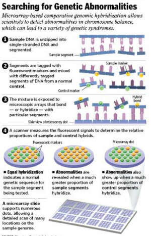 הבדיקה החדשה הוצגה בפני הציבור בתקופה שבה נערך דיון אינטנסיבי סביב בדיקות הסקר לתסמונת דאון, המאפשרות לאבחן את התסמונת באמצעות דגימת מי שפיר או סיסי שליה. הבדיקה החדשה, שמכונה CGH Comparative genomic hybridization (הכלאה גנטית השוואתית), נסמכת על 'מערכי-מיקרו', או 'שבבי גנים', שמאפשרים את איתורם של עשרות תסמונות אשר אינן ניתנות לזיהוי באמצעות בדיקות הסקר הסטנדרטיות.