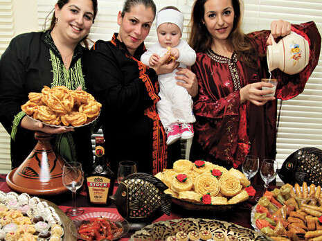 מה בתפריט: "עוגיות מכל מיני סוגים: שקדים, אגוזים, קוקוס, ריבות, דג ענק, והמופלטה. זה המנהג שלנו. יש משפחות שעושות קוסקוס חלבי, אבל אצלנו כל החיים, מאז שהייתי ילדה קטנה, היינו עם מופלטה. יש שתייה חריפה, הרי כל החג לא שותים ויסקי כי זה חמץ, אבל בערב אני קונה בירה וויסקי למימונה, וזה הולך הרבה.