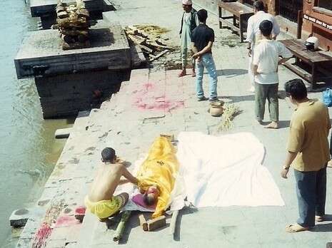 היום האחרון בקַטְמָנְדוּ. אני מקדיש אותו לביקור באתר שריפת הגופות פַּאשׁוּפָּאטִי-נָאט. משני צידי הנהר המזוהם עשרות במות אבן. במות לשריפת גופות. אני מתקרב לגופה עטופה בדים לבנים וצהובים, המוכנה לעלות על במת האבן. איש צעיר מתקרב לגופה וקורע את הבדים. מתגלה ראש. שיער רענן ובריא זְרוּק שֵׂיבָה. שפם וזקָן מחוברים. הוא נראה בריא. בגיל חמישים. אחר כך נחשפת יד. נחשפת רגל. צבע צהוב מרוח על האצבעות. הוא פשוט נראה ישֵן. הוא תיכף יזוז ויתעורר. המוח מסרב להאמין, אבל בפְנים שלווה. יש בי מעֵין שֶׁקֶט. איש אחר מתקרב, אוחז בראש המת, מרימו מעט ומלטפו באהבה, בפרידה. אני מהלֵך על גשר האבן החוצה את הנהר. גופה נוספת מוכנה לשריפה.