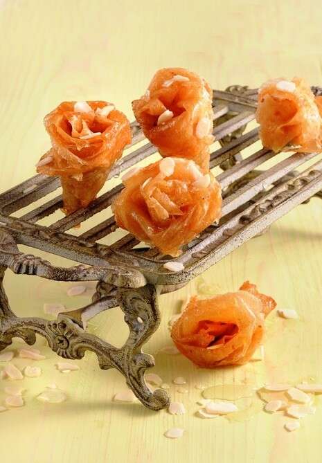 מחממים את הסירופ שנשאר על להבה בינונית, מנמיכים את הלהבה ומכניסים בכל פעם 3-2 משולשי בריק או כל עוגייה אחרת אל הסירופ. מבשלים 2-1 דקות ומוציאים בכף מחוררת אל צלחת שטוחה. מכינים בדרך זו את יתר הבריקים, הפסטלים, הסיגרים והקוֹרְנֵה.