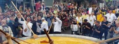 זה מטורף: העיר מלמדי שבבלגיה הפכה לאטרקציה לא מזמן, לאחר שהוחלט לשבור את השיא הנוכחי ולהכין את החביתה הגדולה ביותר בעולם.לצורך שבירת השיא הכינו מראש 10,000 ביצים, אליהן צורפו גם תוספות טעימות. החביתה בושלה במחבת ענקית בקוטר של כארבעה מטרים.