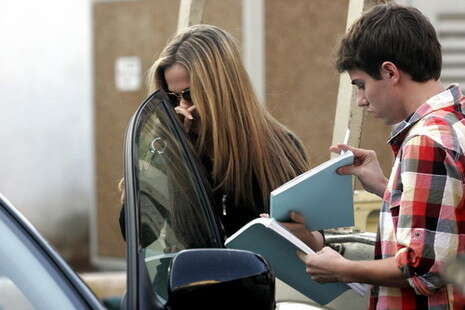 בשיעור הופתעה לגלות בין התלמידים עוד פרצוף מוכר, הדוגמן/ שחקן אדריאנו חאובל, שהצטרף גם הוא לכיתת הלימוד. רודברג החרוצה יצאה עם אחד התלמידים בהפסקת השיעור ועשתה איתו החלפות בספרי הלימוד, בזמן שחאובל ירד לנשנש משהו בקפיטריה וחש נבוך מהמוכרת במקום שהתלהבה ממנו. היא החלה לצעוק בקולי קולות 'אדריאנו!' וכך נוצר תור ארוך שאלה שעמדו בו רק חיכו שתירגע. משם, אגב, הוא כבר התגלגל הלאה.