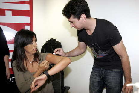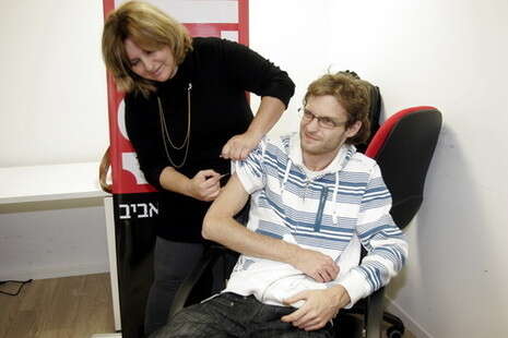 עמרי רונן מחוסן על ידי דורית גולדמן, האחות הראשית של שירותי מכבי בריאות