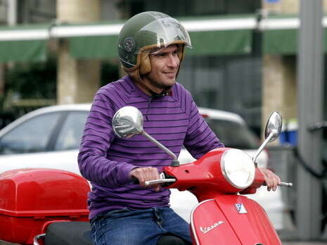 אסי כהן. כך נראה אדם שיודע שהאופנוע שלו מעורר גיחוך ולא אכפת לו