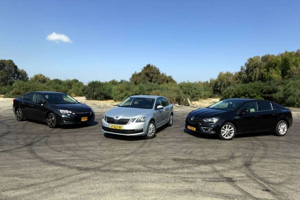 לאחרונה נחתו כאן שלושה דגמים חדשים או מחודשים: סקודה אוקטביה - המכונית השנייה הנמכרת ביותר בסגמנט -עברה מתיחת פנים והיא מונעת מעתה באמצעות מנוע טורבו-בנזין חדש. רנו 'פלואנס' -שהייתה אחת המכוניות הנמכרות בקטגוריה (ובין הבודדות שהציעו מנוע טורבו-דיזל חסכוני) הוחלפה במכונית חדשה לחלוטין, ואילו סובארו אימפרזה -בעבר הרחוק מלכת המכירות בשוק הרכב הישראלי, הוחלפה בדגם חדש לגמרי שנבחן כאן לראשונה בתצורת סדאן (4 דלתות). שלוש אלה עשויות להגיע גם ל"שוק ה-0 ק"מ", ואז לעניין גם לקוחות פרטיים, ואנחנו יצאנו לבדוק במי מהן היינו בוחרים לו היו מצמידים לנו "רכב מהעבודה".