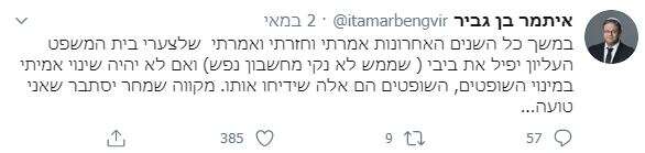 עו"ד איתמר בן גביר, ידיד ותיק נוסף של בית המשפט, הימר שזה יפסול את נתניהו והביע תפילה שהוא טועה. ובכן, לפחות תפילתו נענתה: