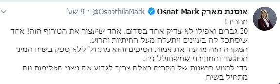 אלא מה, מסתבר ששעתיים לפני הציוץ הזה ח"כ אוסנת מארק צייצה גם צייצה על העניין הזה: