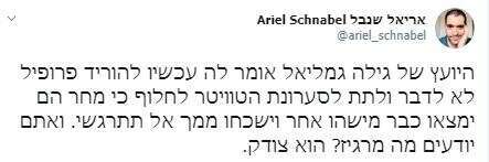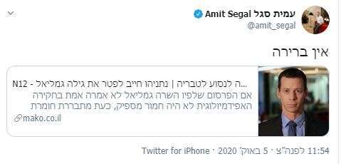אז כאמור, גילה גמליאל הייתה ליום אחד הנושא החם בעקבות הפרסום בהארץ על מסעותיה בישראל ביום הכיפורים והתרגילים שעשתה בחקירה האפידימיולוגית לאחר מכן. לזכותה ייאמר שהצליחה לאחד את הפיד, ימין ושמאל, בדרישה שעליה להתפטר.
