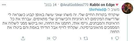 אני מצפה להתנצלות גורפת מפיד שמאל, מהתנערות רבתית שלהם ומפתיחת מהדורות החדשות מחר עם אייטם על זה.